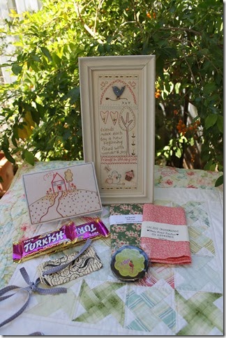 Above are the gifts I received from the online stitching group I am so proud to be apart of….F.I.S. (Friends in Stitching)…my parcel was put together by the gorgeous Razzy…all my gifts are just so perfect, massive hug to you Raz and all the girls….